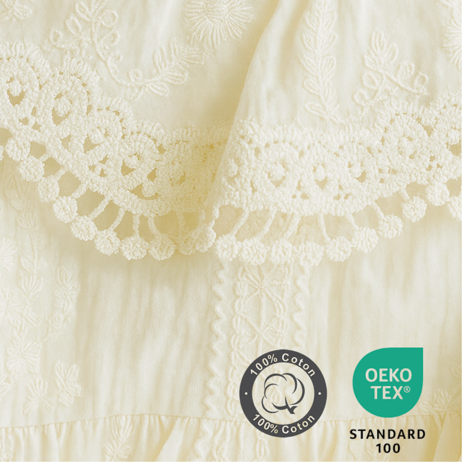 La certification Oeko-Tex Standard 100 est un label international qui garantit que toutes nos barboteuses bébé fille et garçon ne contiennent aucune substance nocive pour la santé. C'est notre engagement classique envers la sécurité et la qualité pour la peau délicate de l'enfant. Nos tissus sont testés pour être souples et doux, offrant une sensation de velours. Grâce à cette assurance, vous pouvez faire porter nos vêtements et cette barboteuse bébé en toute confiance.
